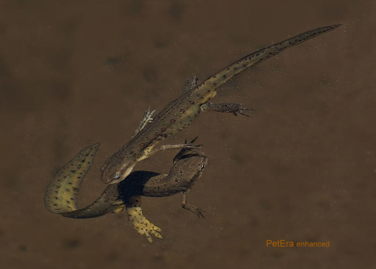下方的雄螈尾部及後腿的變化十分明顯