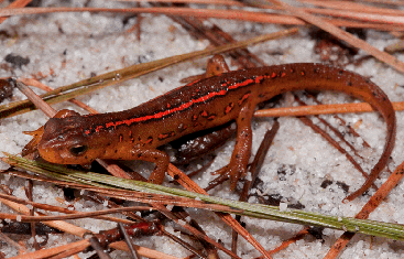 紅紋蠑螈 N. v. dorsalis 倍上具有斷續的橘紅條紋