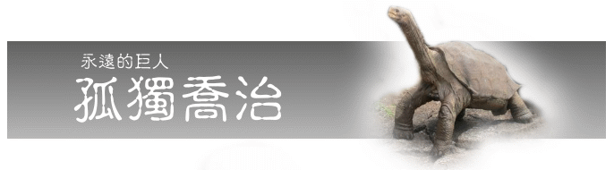 KK 2012.06.30 1971年冬天,一位在加拉巴哥群島最北端的小島上研究蝸牛的生物學家瞥見一隻形單影隻的象龜,這是第一次有人在島上發現象龜的蹤跡。隔年,加拉巴哥國家公園人員終於找到這隻孤單的雄性象龜 ,並將牠運回達爾文研究中心飼養,這隻象龜就是後來被稱為"孤獨喬治" (Lonesome George)的加拉巴哥象龜Pinta亞種,後來也證實了牠是全世界碩果僅存的一隻。