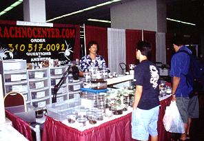 的沈總編約定要為他們好好寫篇報導的,結果也因為沒什麼特別值得報導的東東而作罷,只能讓大家感覺一下美國爬蟲展的現場情形了.與其說是爬蟲展,不如說是假日爬蟲市場更為貼切,因為型態與本地的假日玉市,花市沒什麼不同,只是規模比較大而已.參展的繁殖者,除少數像Sandfire這種比較大的專業繁殖場外,都是家庭式的繁殖者,產品的重疊性很高,產量也是僅夠做小賣,至於國際性則是毫無感覺,繞了一圈發現自己竟是現場唯一的亞洲人.