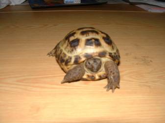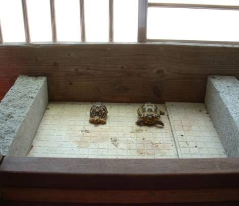 之後,十一月天,象神颱風來襲前後均有鋒面來到,天氣降至約15度左右,當兵的我一有機會一定打電話回家問龜龜狀況,交代家人拿塊布給龜龜保溫,但一個月後回家,發現小蘇的精神很差,心情很遭,四處問水族館老闆該怎麼辦!包括泡溫水、吃維他命都無效,只好聽天由命了!兩星期後,自己在上網時無意發現原來有那麼多的網站在介紹陸龜,當天整整上網18小時,可說完整的瞭解陸龜,對飼養環境也瞭解。隔天馬上修正自己的飼養方式,底材放置無菌木削,加加熱燈,食物也多樣化了,儘管如此但我的小蘇過了一個月後還是走了,為了安慰自己,又買了一隻小蘇﹝由於買時老闆只有兩隻,兩隻看起來精神狀況都不是很好,就隨便選了一隻,一個月後也走了!﹞,之後又意外看見一隻同size的四趾,雖然看起來不起眼,但看牠是掛著陸龜的名號,就買了回家。