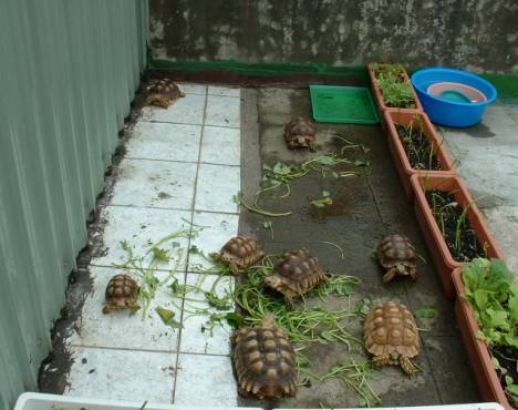 蘇卡達一族 最大25公分、最小15公分平時就養在陽台,假日時移至戶外