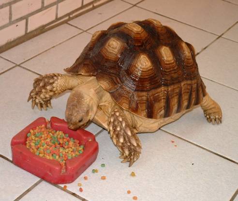 小星龜住那?吃啥?如何佈置環境?一堆問號!我完全不知,只有水族館老闆告知的,住水族箱﹝目的要我買一個,我也買了﹞,吃小黃瓜。我均照老闆指示交待家人飼養,沒什麼問題!兩星期後,﹝因當兵太無聊了,整個腦袋想的都是那隻小星龜﹞,放假了,怕小星龜太無聊,想幫他找個伴﹝其實是自己的佔有欲在做祟﹞,又四處找水族館找看看有無在賣陸龜的!想找一隻與小星同Size的龜龜,皇天不負苦心人,找到晚上十一點才在x區水族看到一堆小蘇,牠們活潑好動可愛的模樣讓我心花怒放,當場買下一隻,快速回家!感覺很爽!