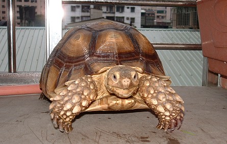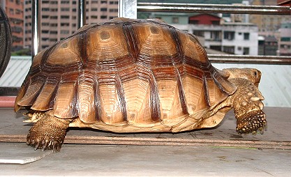 不過請注意觀察,大蘇的背甲塊接縫處出現問題(數處白色部份),有點像是脫殼!我還在研究原因,是日曬不足、餵食問題、還是其他?不過自從以青草為主食來控制其生長速度後,狀況有明顯改善!
