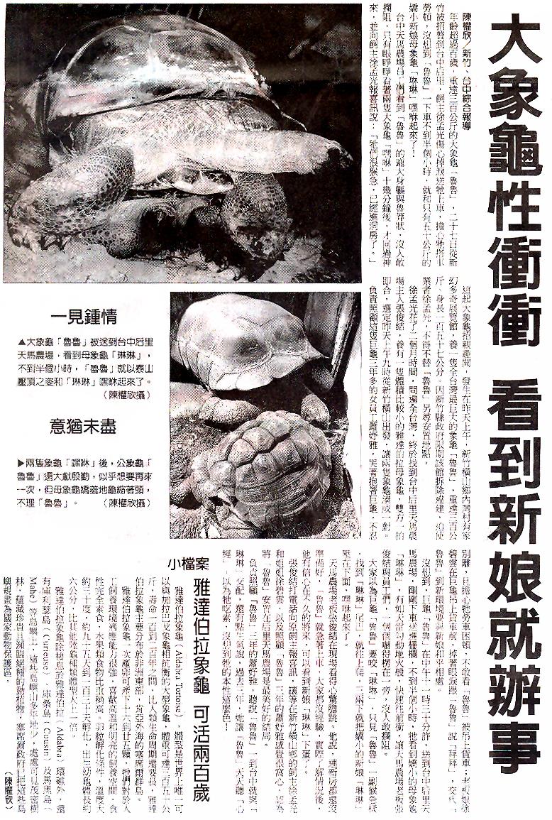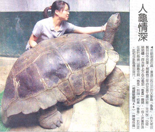 這是最近發生在新竹的事.這隻阿達已經是完全成年的雄性個體,要被送到他處收養.由巨大的體型和渾圓的龜殼看起來與動物園的阿達似乎是同期的個體,而且應該是在進口時就已經是成體了.