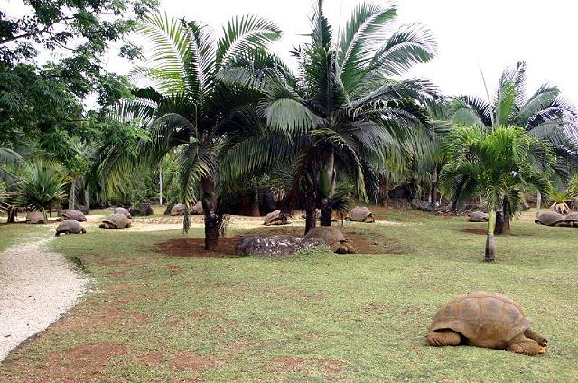 香草鱷魚公園的象龜園以棕櫚樹和青草地為主要佈置 |
