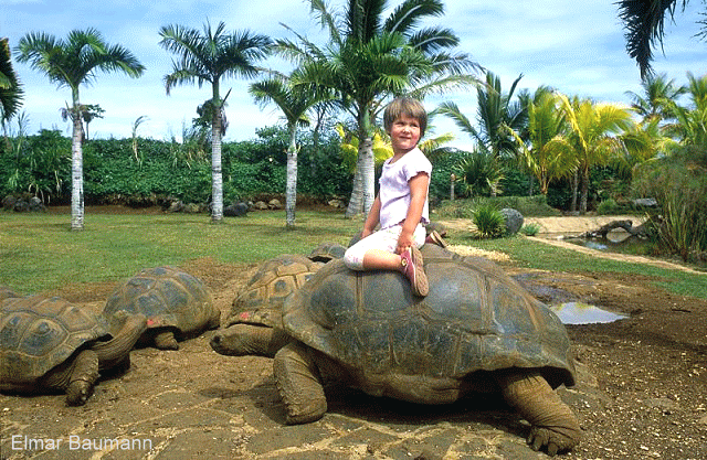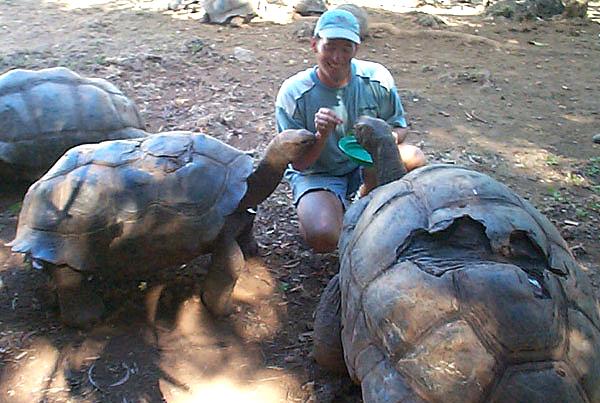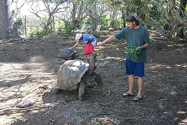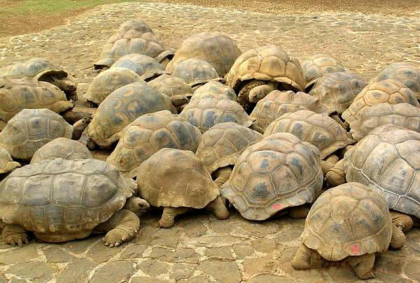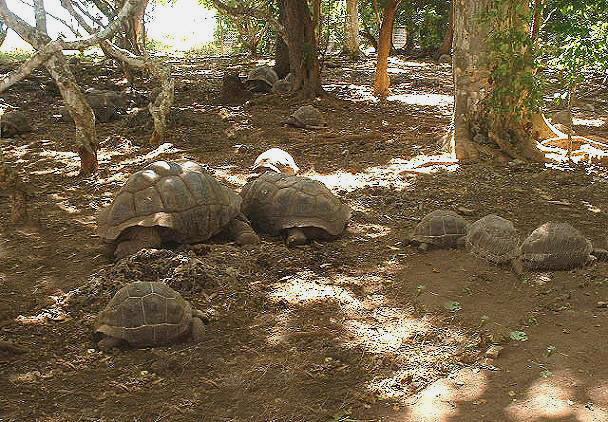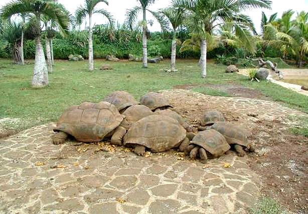 在十六世紀初,也就是四百多年前,相當於我國的明朝中葉,全世界原來共有三個地方棲息著巨型象龜,加拉巴哥群島,塞席爾群島和模里西斯群島,牠們都位於西印度洋.其中又以模里西斯群島中的羅里格斯島(Rodrigues)分佈的數量最多.不幸的是模里西斯剛好位於海洋航線上,外來移民和航海水手將這些巨型象龜屠殺殆盡,到了十八世紀晚期,野生的族群已經難以得見.當英國生物學家達爾文於1836年來到島上時,模里西斯各島上的象龜