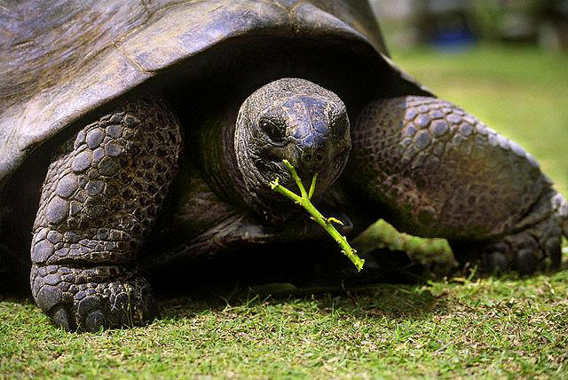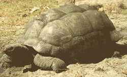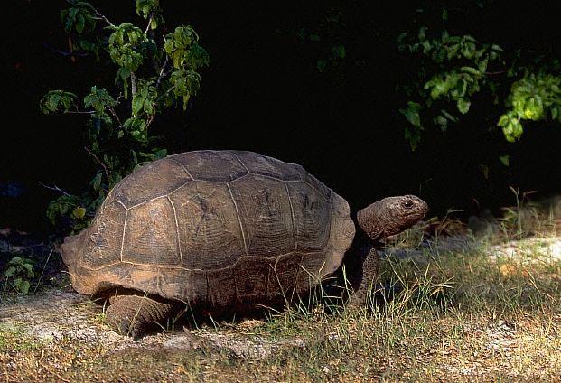 giant tortoise - Dipsochelys arnoldi 背甲呈馬鞍形,原被認定絕種,1997年再度發現,僅存18隻.