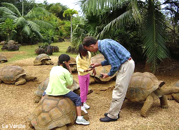 大小不等的阿達,每年可以生產200隻以上的幼龜,已經成為世界上最大的阿達繁殖場.在公園中的阿達是可以供兒童騎乘的.除了阿達之外,園中也可以穩定繁殖輻射龜以及其他西印度洋的野生動物.多年來,香草鱷魚公園已經成為模里西斯最著名的旅遊景點.當然,模里西斯島上還有不少其他的阿達族群存在於私人的養殖戶手中,不過都是10-20隻以內的小族群,每年也都有少量的出口.