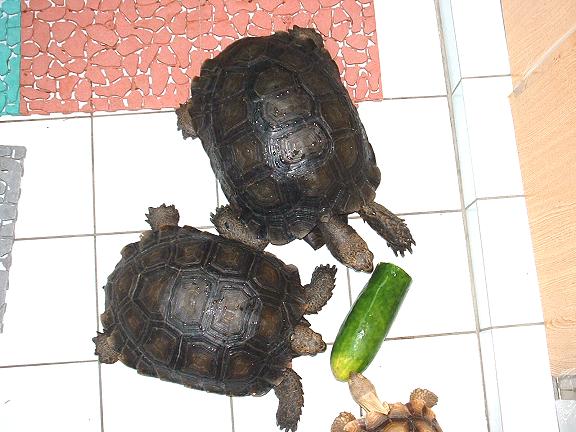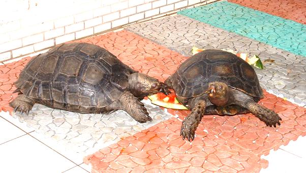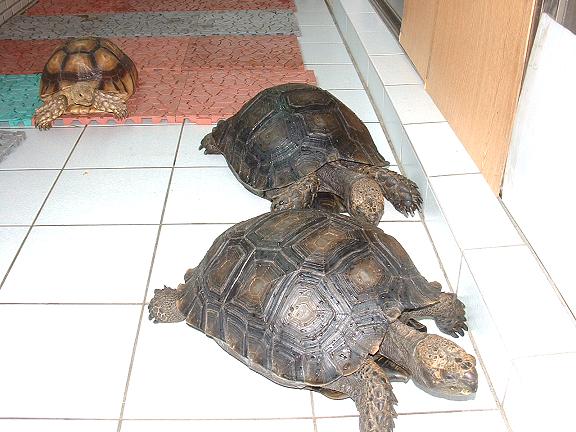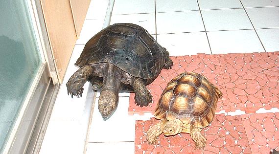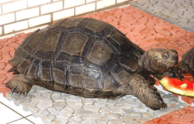 在一次難得的機會中接觸這種最古老的生物,牠們不怕陌生,與人互動良好,可說是陸龜之最。龐大的身軀,引起頸來的氣勢絲毫不比亞達伯拉遜色,只可惜目前國內數量稀少,要目睹牠們的丰采實在不易,連動物園爬蟲館的那幾隻也都還是棕靴腳不是黑靴呢