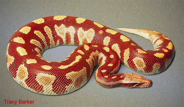 在Python屬當中,血蟒是體型最粗壯的一種.因為長度與腰圍的比例接近,所以給人一種很臃腫的感覺,比球蟒更微誇張,尾巴只剩短短一小截,這也就是短尾蟒的名稱由來.三種血蟒原本是同屬Python