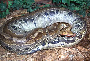 蘇門答臘黑血蟒在體型與花色上都與球蟒很近似 |