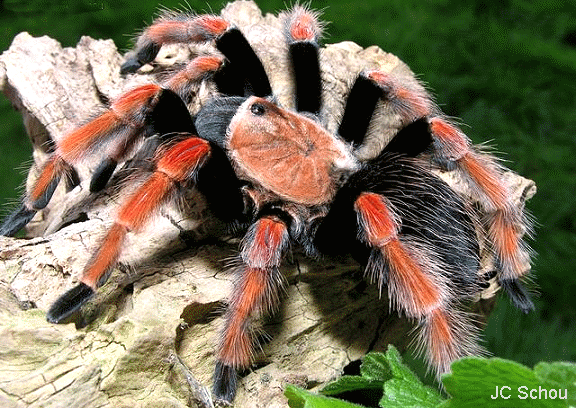 值得一提的是毛蜘蛛的腳部密佈細鉤,所以可以輕易爬上玻璃表面,比起守宮毫不遜色因此飼養箱一定要加蓋以免牠們逃走.墨西哥血腳的成長