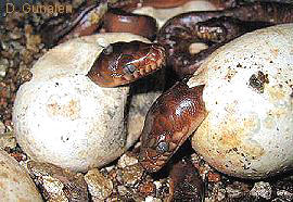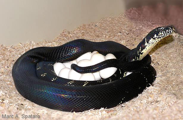 經常都孵化失敗.美國繁殖場通常都對親體進行一個月左右的寒化處理.黑白莫瑞蟒通常美窩產下10-25顆卵,以攝氏30度孵育,約70-80天可以孵化.一