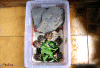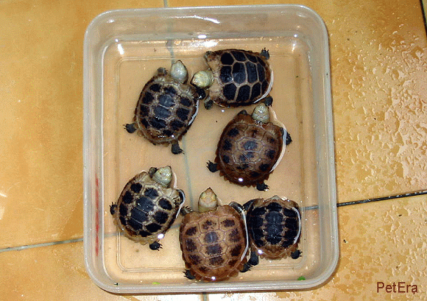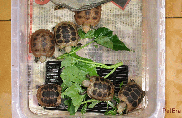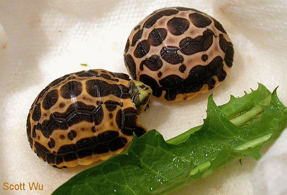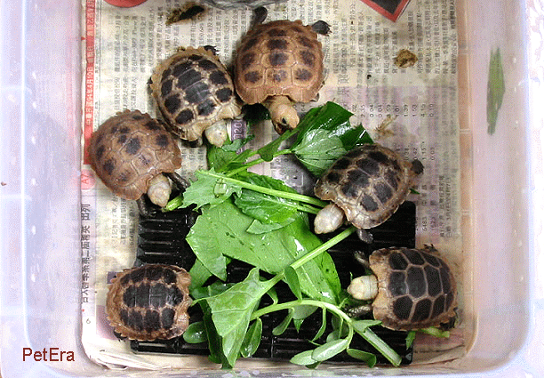 這些小黃頭幼龜在卵囊吸收掉之後就開始自行進食,看到菜葉就不停大吃,完全不需要學習,所以成長非常快速.幼龜的照顧其實也很簡單,只要每天泡水和餵食,空間也不需要太大,一個簡單的塑膠工具盒和一個簡單的石片搭的窩,底材用報紙經濟實用,這樣就可以養出健康活潑的幼龜了.