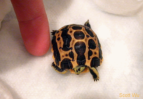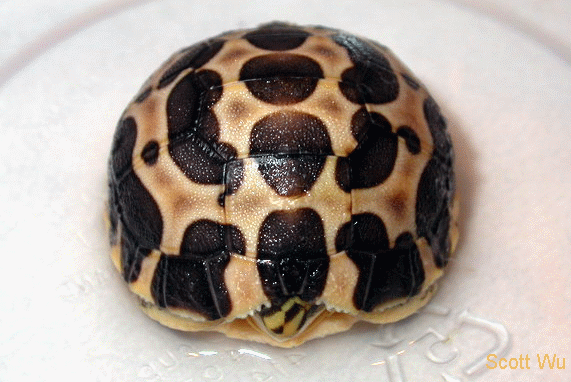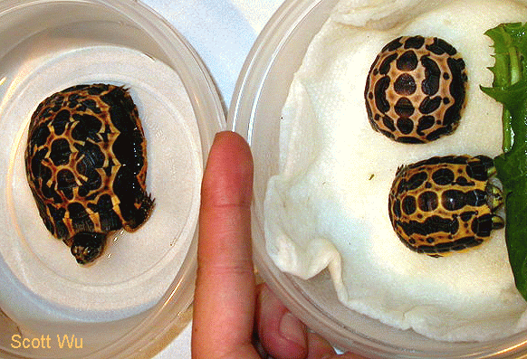 過與去年初生的那隻比較起來,雖然只相隔七個月,但是體重卻差了三倍之多.體長也差了將近一半.由此看來,蛛網龜在初生的階段成長速度似乎並不