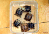 比較奇怪的是第二批黃頭幼龜背甲上的黑斑普遍比第一批的黃頭大很多,同時第二批幼龜之中也出現了一隻背甲錯甲的幼龜,是長蛋之一,不知道這兩個現象與孵蛋期中孵蛋機曾經失常,有幾天溫度降低了5-6度有關.