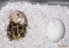 五隻小黃頭,只剩兩顆尚未孵化,其中一顆蛋明顯轉變為透明,應該是未受精,所以只剩最後一顆繼續努力孵了.