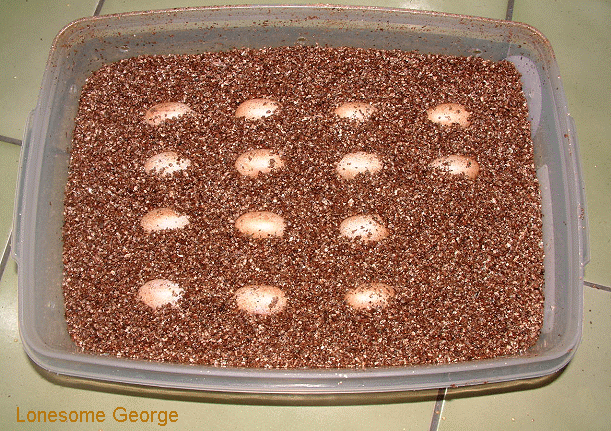輕易傳授太多繁殖訣竅,但是經年累月的請益與嘗試,今年總算有了初步的成果.有一批14顆蛋全部成功的孵化,孵化率100%.但是相對於其他幾批全部失敗的蛋,數目超過40顆以上,整體成功率卻只有25%左右,還是相當低的.只是孵化率的提升肯定會隨著經驗累積不斷進步的.