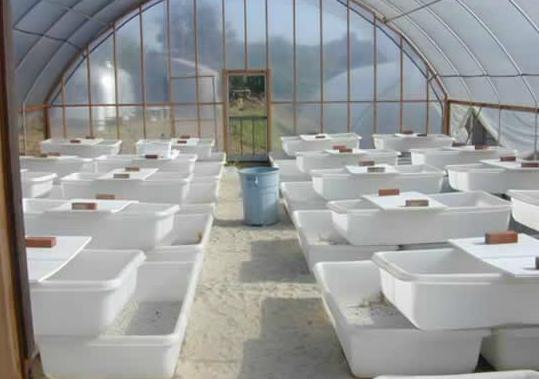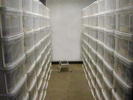 - 由於美國氣溫較低,所以整個繁殖場都是以溫室的方式佈置,透明塑膠布可以視狀況需要開闔,兼具採光與保溫,十分方便.這個繁殖場是以美國國內市場為主,所以繁殖的爬蟲都是比較大眾化的一般種類,所以產量也很驚人.