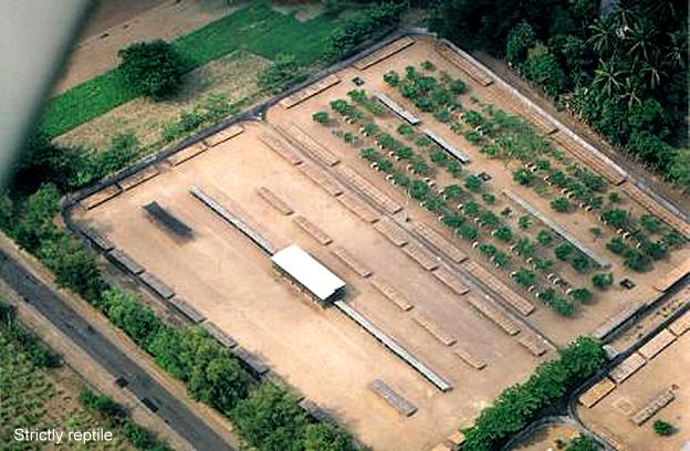 的保育類,出口配額有限,因此在墨西哥,宏都拉斯,巴拉圭等各國的繁殖場也就應運而生.但一般說來,南美洲的養殖場設備較為落後,規模也比較小,多半以粗放式養殖,直接圈出一片林地飼養,而美國佛羅里達的業者就是科學化的大規模養殖,由照片可以看出養殖密度很高,遍地綠鬣蜥的畫面確實十分壯觀.