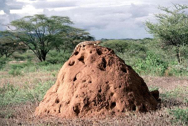 在蟻坵上曬太陽的白喉巨蜥和周遭的天然環境 |