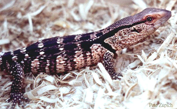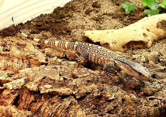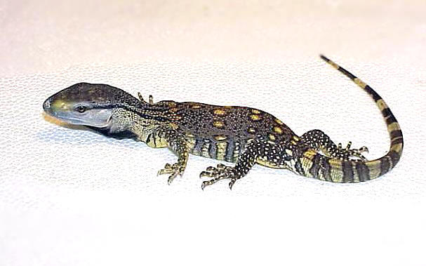 白喉巨蜥幼體黑色帶斑十分明顯 |