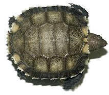 棕靴腳幼龜出生時體色較黑背甲邊緣為鋸齒狀 |