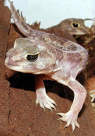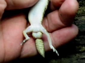 白眉守宮具有超長的尖爪                雄性成體尾巴根部有明顯的凸起