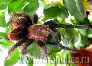 雌雄辨別與一般毛蜘蛛相同,繁殖方式也相同.蘇俄有位玩家把雄性墨西哥紅尾(B. vagans)和雌性捲毛雜交成功,結果卻產生一隻可能是舉世無雙的雙腹毛蜘蛛,同時具有捲曲的長毛和紅尾兩個特徵,而且具有兩個腹部,可以同時吐絲,竟然還能夠出人意料的長大成熟,牠的主人抗拒了高價的誘惑,決定把這項驕傲留在蘇俄.有關這隻突變蜘蛛更多的資料可以參考網站http://www.tarantulas.ru/tex/nonsens.htm.不過要會俄文才看得懂囉.