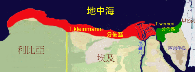 埃及陸龜與納吉夫陸龜的分佈區以尼羅河三角洲為界