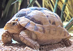 埃及陸龜需要很乾燥的環境                  成龜腹甲有兩個三角形黑斑