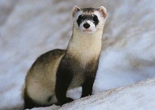 產於北美的黑腳貂Mustela nigripes         矇眼貂的祖先歐洲貂Mustela putorius