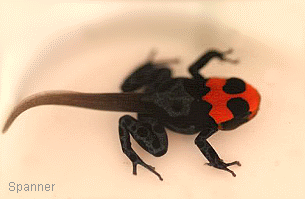 火焰箭毒蛙的體型較一般拇指蛙大的