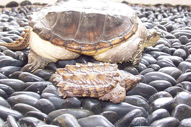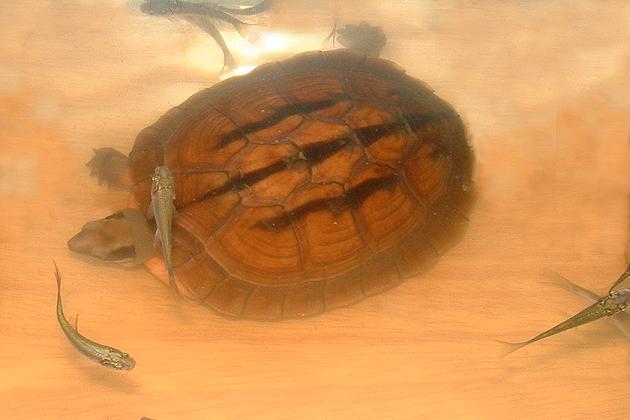 說起牠們不禁有點心痛,因爲牠們很小的時候是有六個的。由於剛開始養時,對龜的生活方式真的知道有限,在沒人看的時候就犧牲了兩個三線,本來牠們兩個的死以爲是冷死的,後來當第三個在水下伸長頸時才發現,原來有些三線是不會游泳的。我把它拿上水面時,它已經不行了,一點力都沒有。我一直用手一下又一下按它的龜底板,用手幫它暖身,經過半個小時的急救,終於爪慢慢的有力起來,救回它這種心情真的好有FEEL,經過兩個半龜死亡事件之後,才知道牠們已經成為我生活的第二生命了(第一是我老婆,她也很喜歡龜的)。