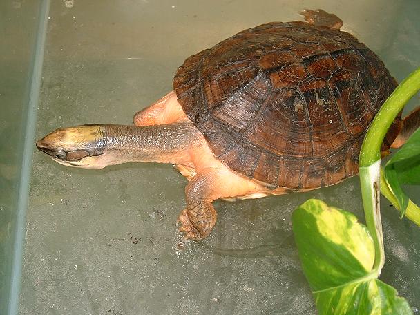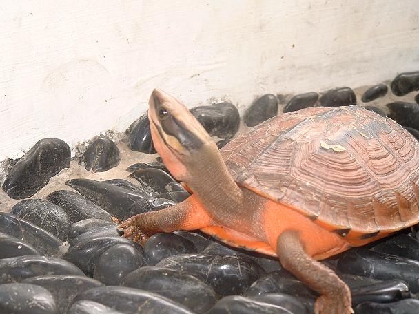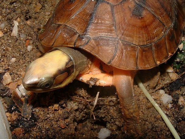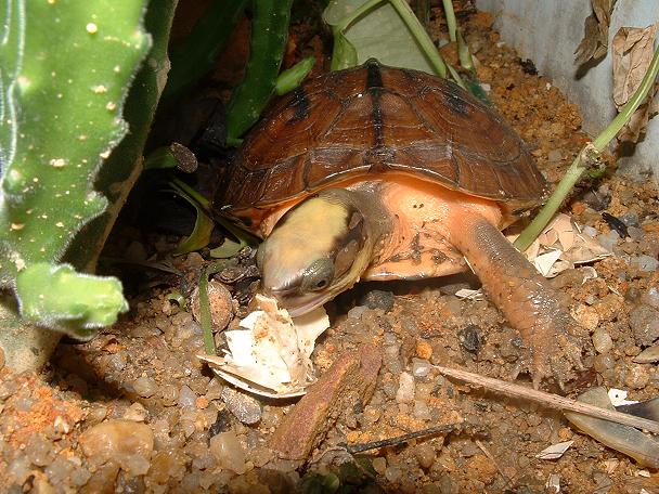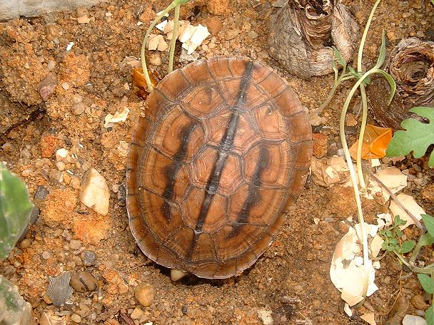 大陸龜友, 蝦餃的愛龜.是很昂貴的稀有大陸原產箱龜,三線箱龜.一隻大約十公分的個體在大陸可以賣到四千人民幣,約台幣一萬五千元以上.到台灣來至少也要兩萬以上,可以算是最高貴的箱龜類了,以牠紅棕色的龜甲,鮮明的三道黑線,頭頂金黃的顏色,的確是名不虛傳的出色龜種........KK