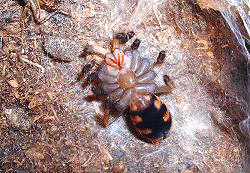 在交配時被雌性吃掉,在將雄性移入雌性飼養缸之前要確定雌性已經完全適應飼養缸的環境,也已經建立了棲息的洞穴和保護網,然後才進行交配,成功的機率會比較高,但是還是要注意如果雌性表現出攻擊行為的話就要立刻將雄性移出,過幾天再嚐試交配.雄性的壽命通常比較短,大約2-4年,雌性大約12年.如果有意繁殖,當然雄性多準備1-2隻最為理想.