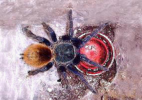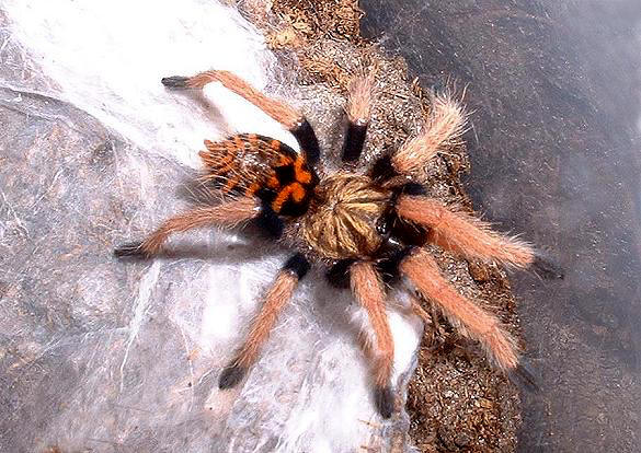紅綠橙同樣屬於地棲型毛蜘蛛 |