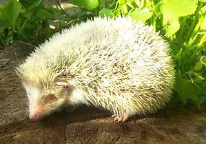 歐洲刺蝟紅眼白子            刺蝟典型的自衛動作捲曲成球