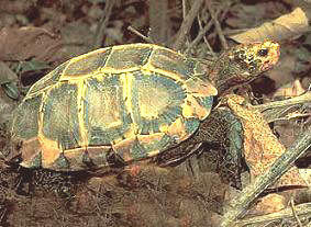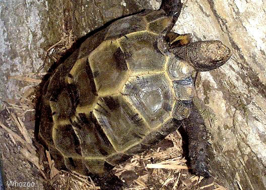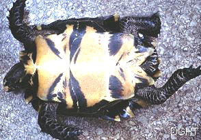 麒麟陸龜的鼎鼎大名相信龜友們都不陌生,牠們出名不在於稀有,也不在於外型特殊,而是在於很難在人工環境中存活.大陸稱之為凹甲陸龜也算貼切.因為牠們的背甲每塊甲盾,特別是脊盾都是成凹陷狀.這項特徵在同屬的陸龜中是一项共通的特徵,與麒麟陸龜同屬的就是靴腳陸龜(Manouria
