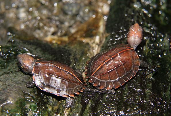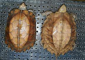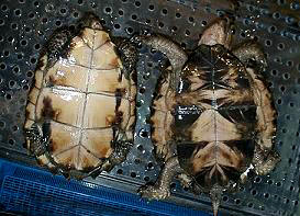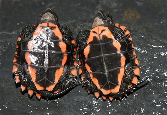 右邊是亞種C.m. obsti腹甲呈放射狀斑紋 |