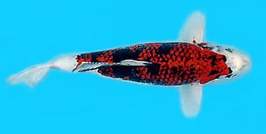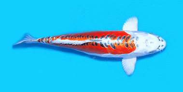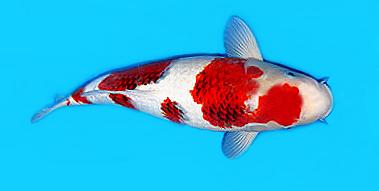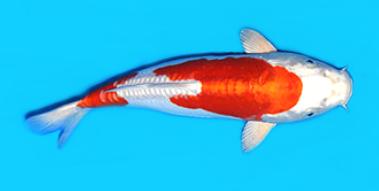 錦鯉的最基本也最古老的體色,純白色的底色上分佈千變萬化的紅色花紋.