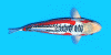 整體灰藍色的網狀體色,鰓蓋週邊有鮮豔的紅色花紋胸鳍也有紅色分佈.