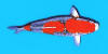 紅白體色上分佈藍色輪廓的鱗片,是紅白與淺黃雜交而來.