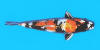 純黑色的底色上分佈白色與紅色花紋,頭部有黑斑.