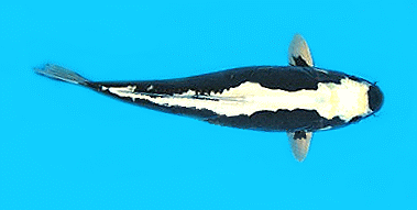 純白色的德國鯉底色上被其兩側各有一條黑色龍型花紋.