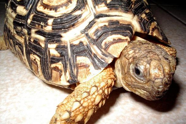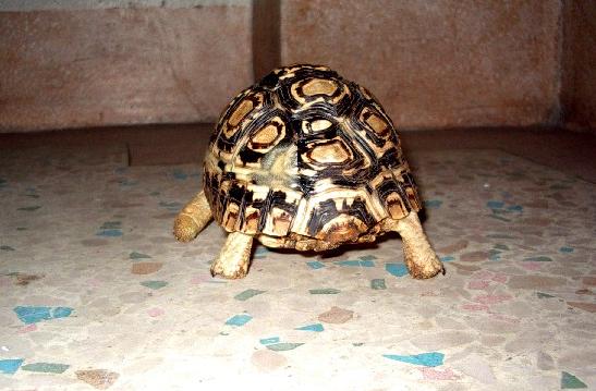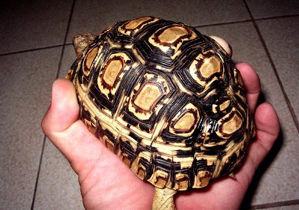 豹龜,最近爬蟲商進口很多,多到像公園樹下的螞蟻,或廚房水管中的蟑螂。這麼多的豹龜,又有什麼不平凡了?這隻豹龜就是與眾不同!牠剛進我家的時候,不怎麼顯眼,唯獨老爸眼光特別。當他抓起這隻豹龜時,左看右看,抓在手中端詳許久。老爸對我養烏龜的事不予以置評,難得心血來潮,對烏龜產生興趣,我倒覺得很意外。
