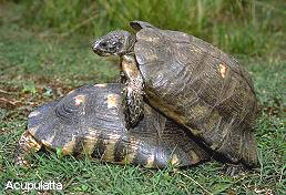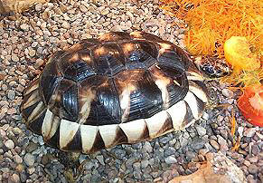 雌龜背甲邊緣不會外翻且保有黃色斑紋                        缘翹陸龜體色隨成長而趨於黝黑