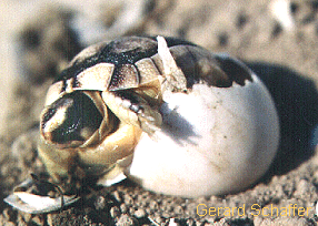 缘翹陸龜的繁殖難度不高                                  初生幼龜與歐陸類似