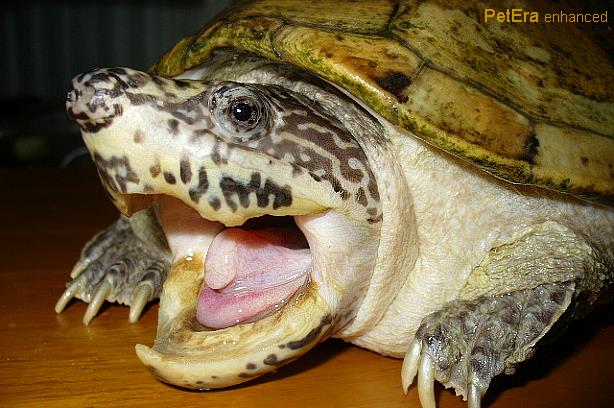 三弦麝香龜強有力的上下顎需要特別提防咬傷 |
